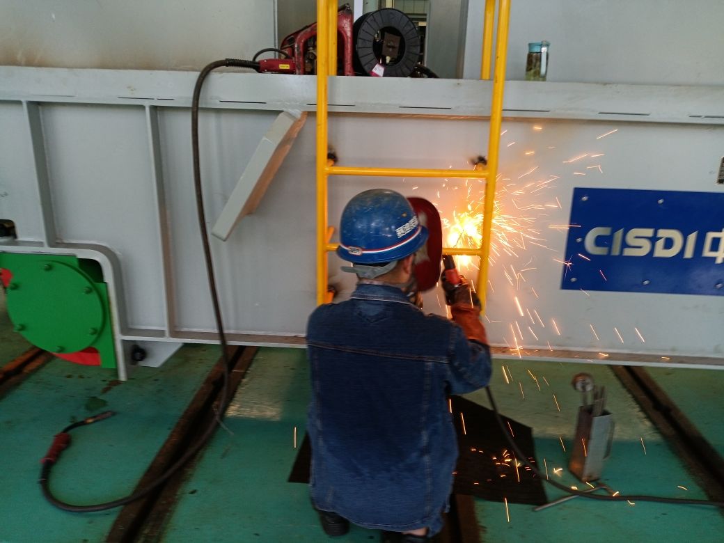 走進車間,一股股熱氣迎面襲來,現場氣溫高達50多度,工人們雖然已經汗流浹背,但工作熱情絲毫沒有降低。現場的焊工按照工藝焊接要求,施焊周邊不能用風扇等降溫設備,且必須穿厚實的焊接用牛仔服、戴著厚重的防塵面罩,經受著300多度的焊接高溫輻射。這樣的情況下,不到五分鐘,汗水就會浸濕厚厚的焊工服,高溫又把它烘干,如此反復。他們憑借著頑強的毅力與高溫作戰,一手面罩,一手焊槍,在電與火之間續寫著賽迪精神。