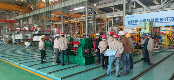 2023年3月14日,臺灣燁興線棒復(fù)合線改造項目業(yè)主就中冶賽迪裝備設(shè)備成套的NHCD系列高剛度短應(yīng)力線軋機(jī)、FHSCD系列飛剪、夾送輥、SRSCD系列高速線材減定徑機(jī)組等核心設(shè)備進(jìn)行A檢。通過過程材料檢查、數(shù)據(jù)測量、模擬試車等一系列環(huán)節(jié),各項指標(biāo)均符合設(shè)計要求,A檢順利通過。其中精軋區(qū)核心裝備之一的減徑機(jī)測試速度達(dá)117m/s,最大振動值2.6mm/s,達(dá)到國際先進(jìn)水平。