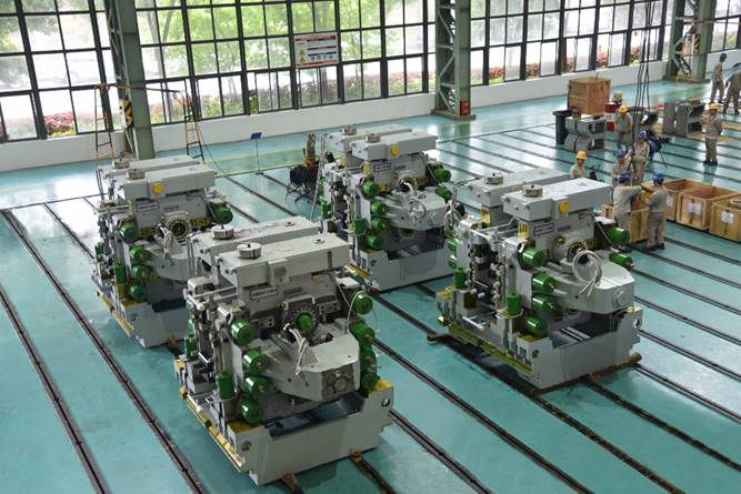 萬能軋機作為型鋼廠的核心關鍵裝備,因其工藝復雜、技術難度大、制造精度高,長期被國外供應商壟斷,限制了鋼鐵制造業(yè)的發(fā)展。為扭轉這一被動局面,中冶賽迪發(fā)揮研發(fā)、設計、制造緊密結合的優(yōu)勢,積極進行技術攻關,針對國內軌梁軋線存在生產效率不高、產品尺寸精度級均勻性差、軋制產品靈活性低等問題,自主研發(fā)軌梁開坯軋制、萬能軋制及型鋼矯直等關鍵核心技術,開發(fā)出系列化精品軌梁生產工藝、裝備及控制系統(tǒng),研發(fā)了升降組合萬能軋機輥系組、軸向自動可調萬能軋邊機、框架式換輥裝置,成功實現(xiàn)了閉口牌坊式型鋼萬能軋機裝備自主化突破,有關技術獲17項發(fā)明專利和22項實用新型專利授權。