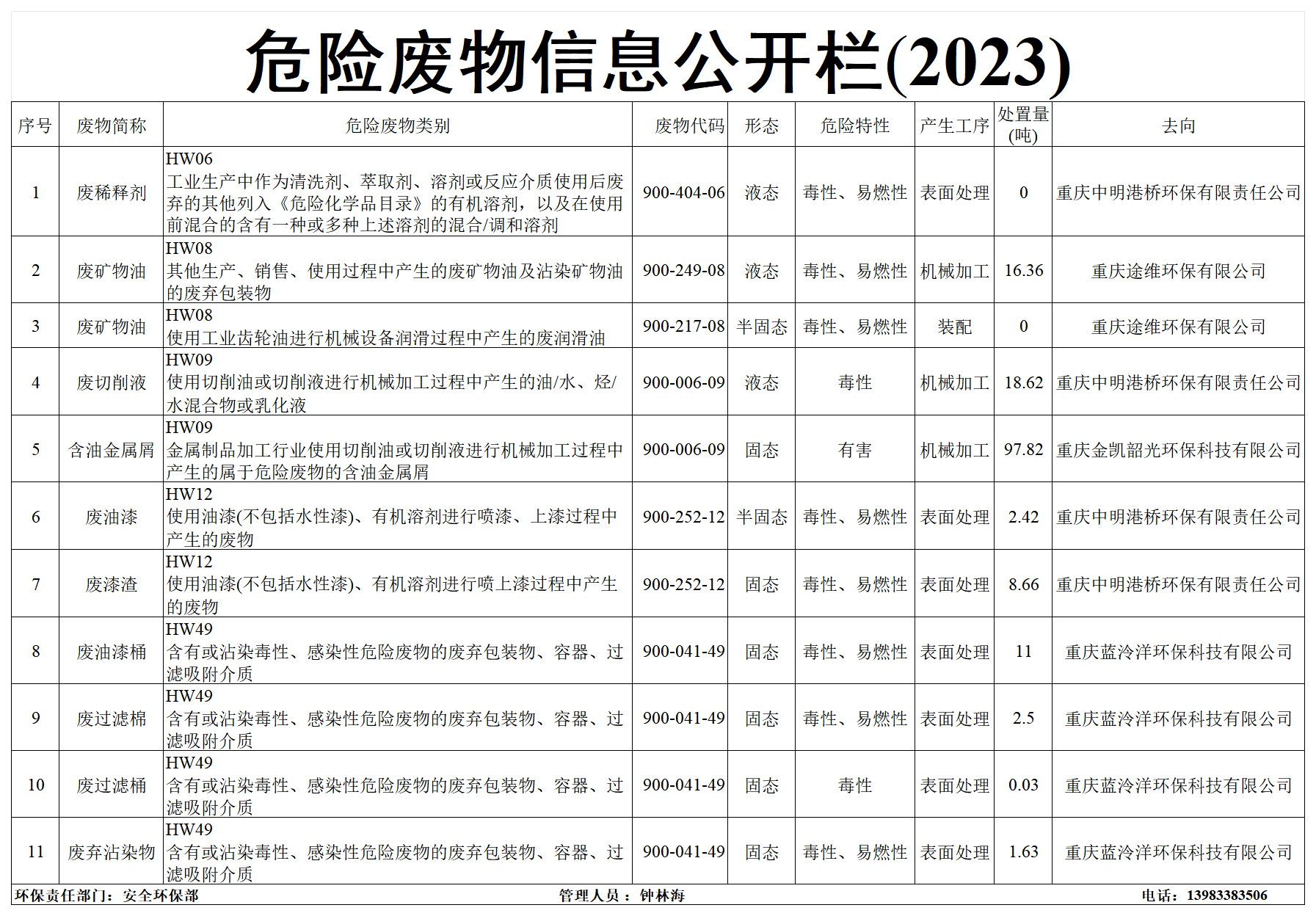 2023年度危險廢物信息公開欄